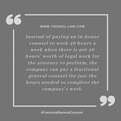 Instead of paying an in-house legal department to work 40+ hours a week when there is not 40 hours' worth of legal work for the attorney to perform, the company can pay a fractional general counsel for just the hours needed to complete the company's work. However, the company has a fractional attorney “on call” that it can reach whenever a legal matter needs immediate attention.