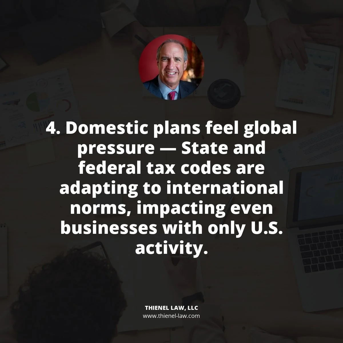 Even if your operations never touch another country, your overall tax position may still be affected. Why? Because states and the federal tax system increasingly conform to international developments.