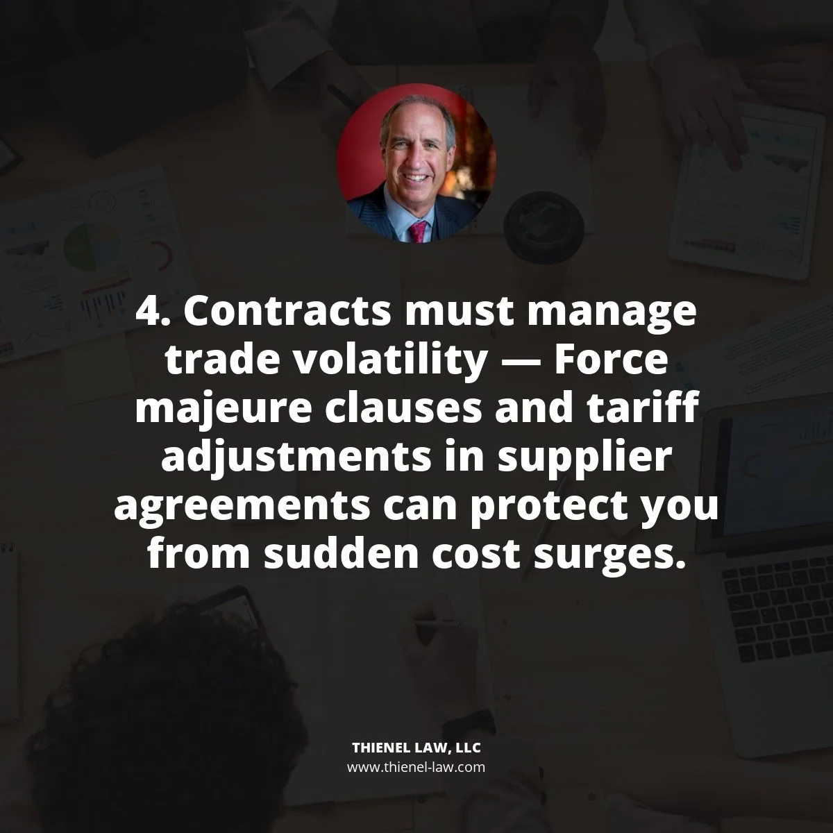 It also means revisiting your commercial contracts. If you're not including specific language about force majeure, tariff pass-throughs, or material cost fluctuations, you could find yourself bearing the full burden of these price spikes — or facing breach claims.