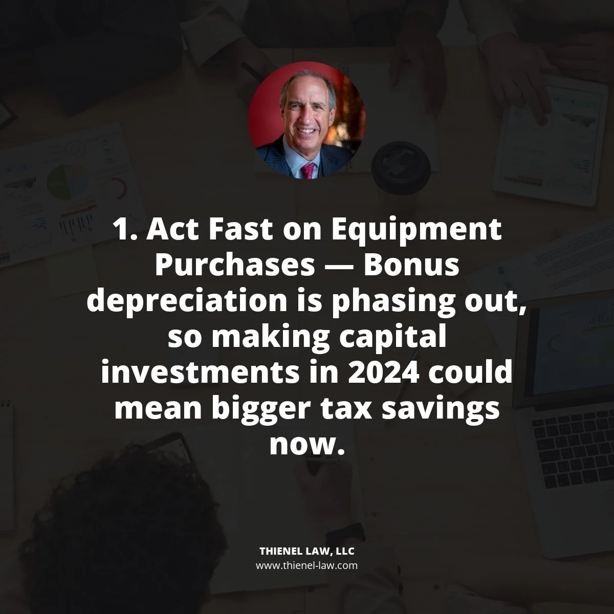 If your business is due for new equipment or infrastructure upgrades, accelerating those purchases into 2024 or 2025 could enable you to capitalize on still-available bonus depreciation.