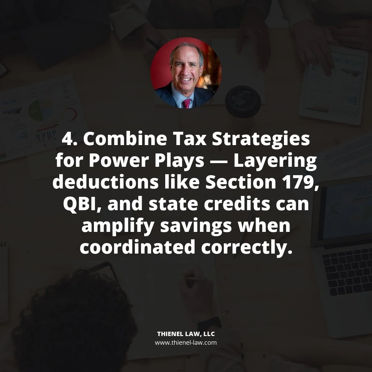 Many businesses miss opportunities to combine bonus depreciation with other deductions, such as the Section 179 expense, Qualified Business Income (QBI) deductions under Section 199A, or state and local tax planning. Coordinating these strategies can compound savings.