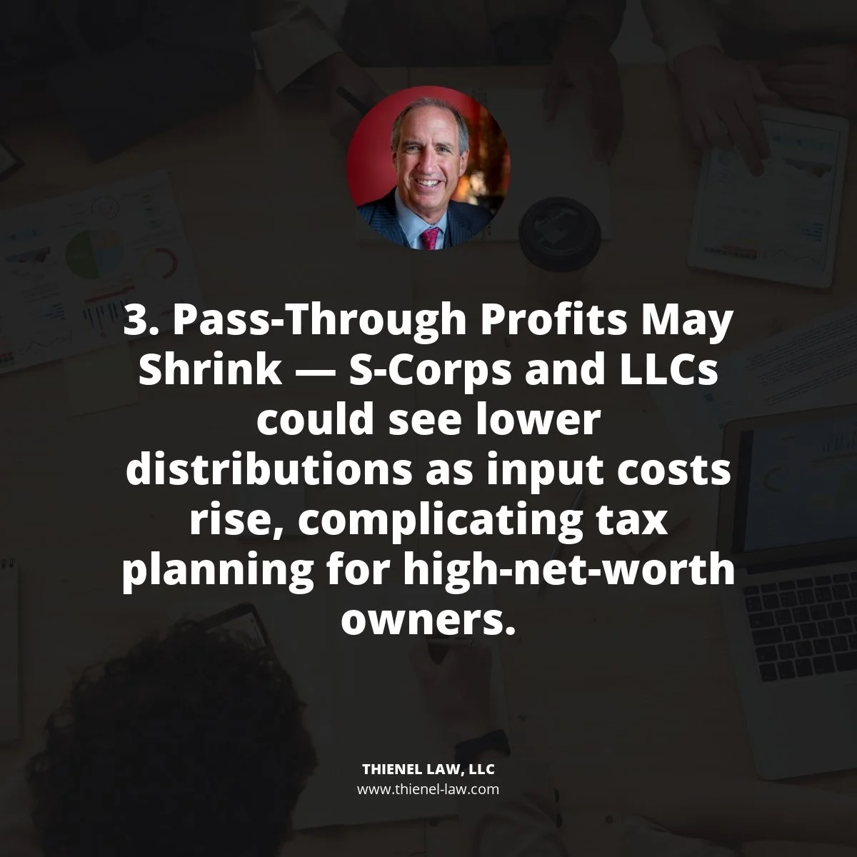 Imagine an LLC in Maryland that manufactures consumer home goods and sources materials from Asia. With tariffs increasing component costs, the business reduces distributions by 25% to retain cash. That's less income passed through to the members, and a possible trigger for revisiting tax elections, compensation strategies, or debt structures.