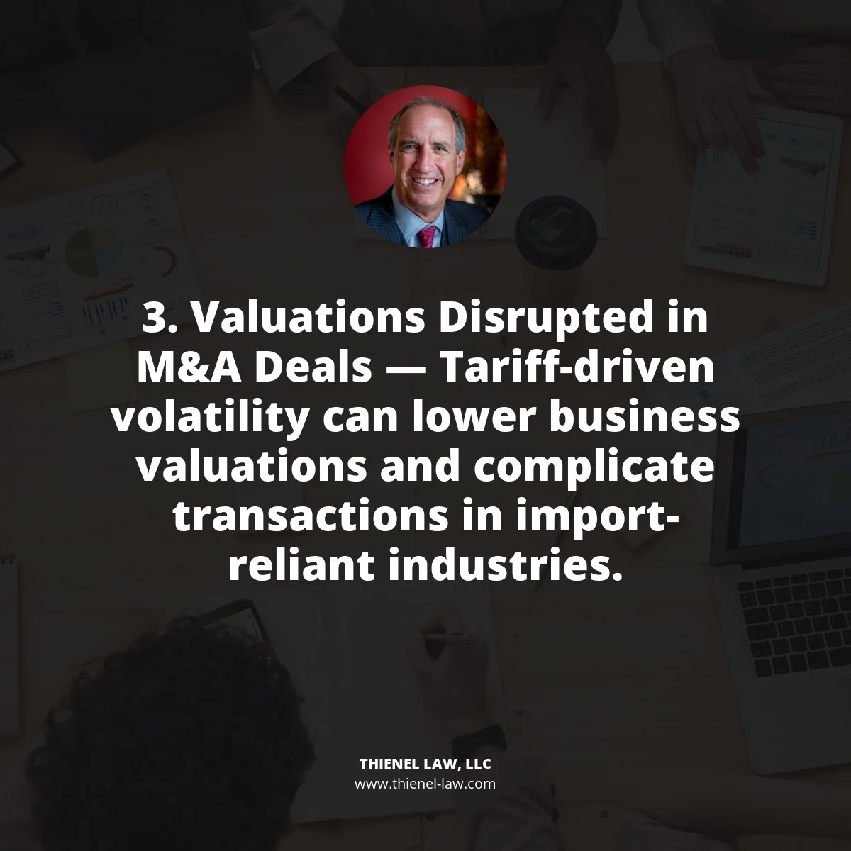 Tariffs impact revenue forecasts, cost projections, and even customer retention—dangerous variables when trying to set a fair market valuation. For example: