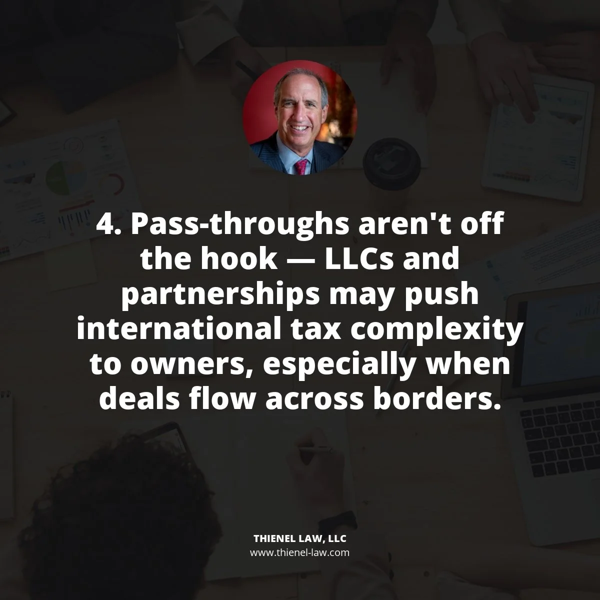 LLCs, S Corps, and partnerships may pass international tax complexity through to their members or shareholders. Consider whether restructuring or use of blockers is appropriate for your situation.