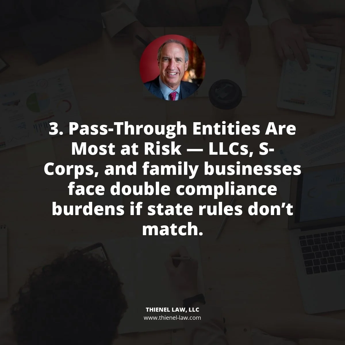 Reassess Entity Structure: With possible mismatch in how states treat deductions and income recognition, your business structure from five years ago may no longer be ideal