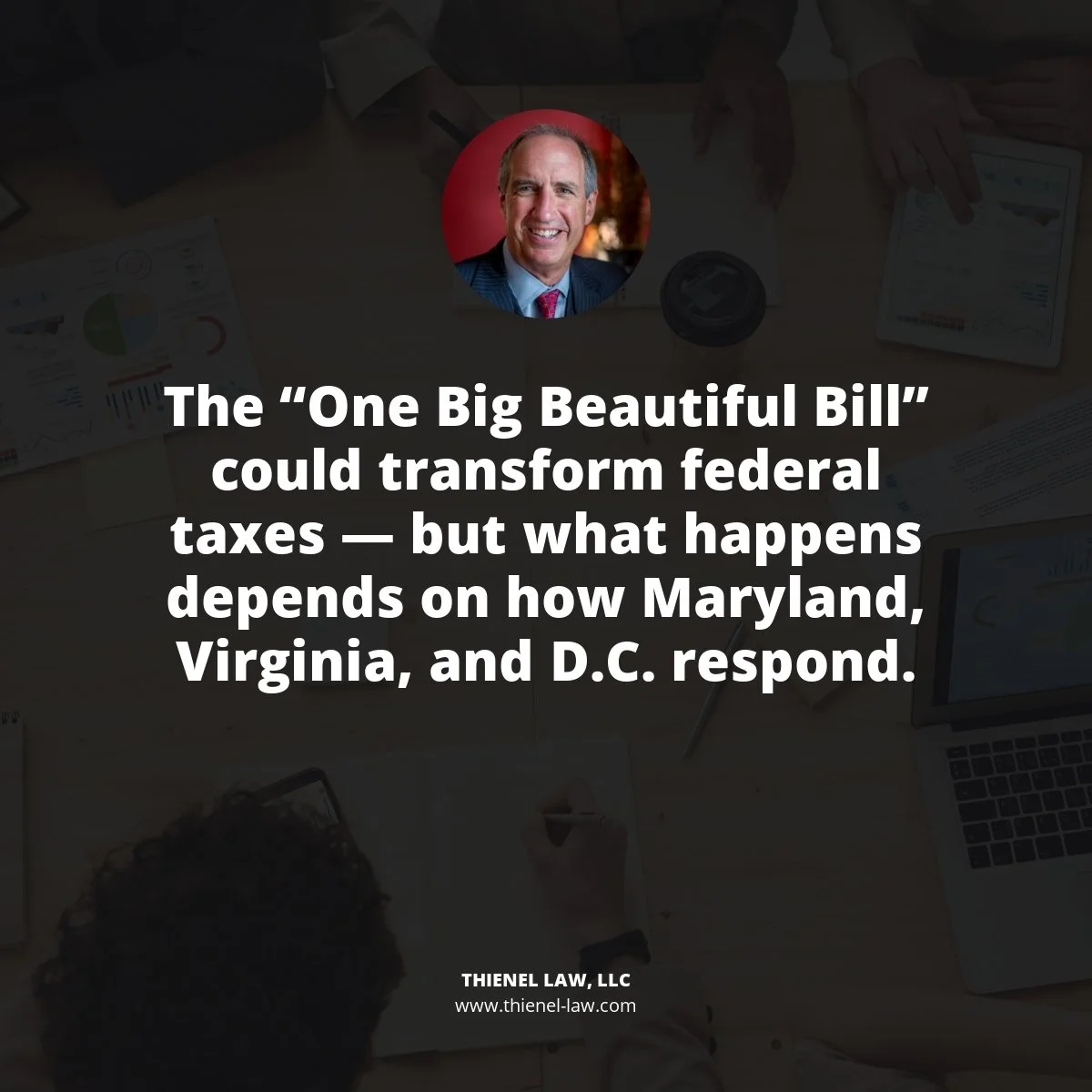 However, since states set many of their own rules when it comes to corporate taxation, they aren't required to align with all of the bill's provisions. Whether Maryland, Virginia, and D.C. choose to conform to the new federal standards could affect year-end planning, entity selection, and even long-term succession strategies for our clients.