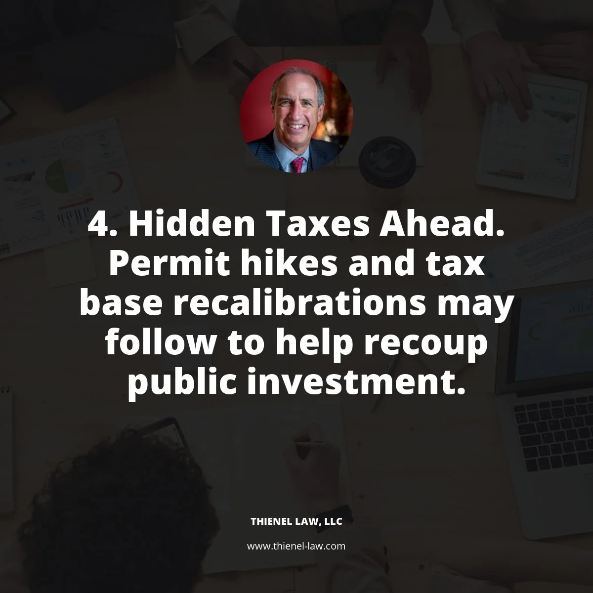 Business property tax assessments may be revisited, especially for commercial spaces located near the stadium zone, where rising property values could lead the city to recalibrate its tax base