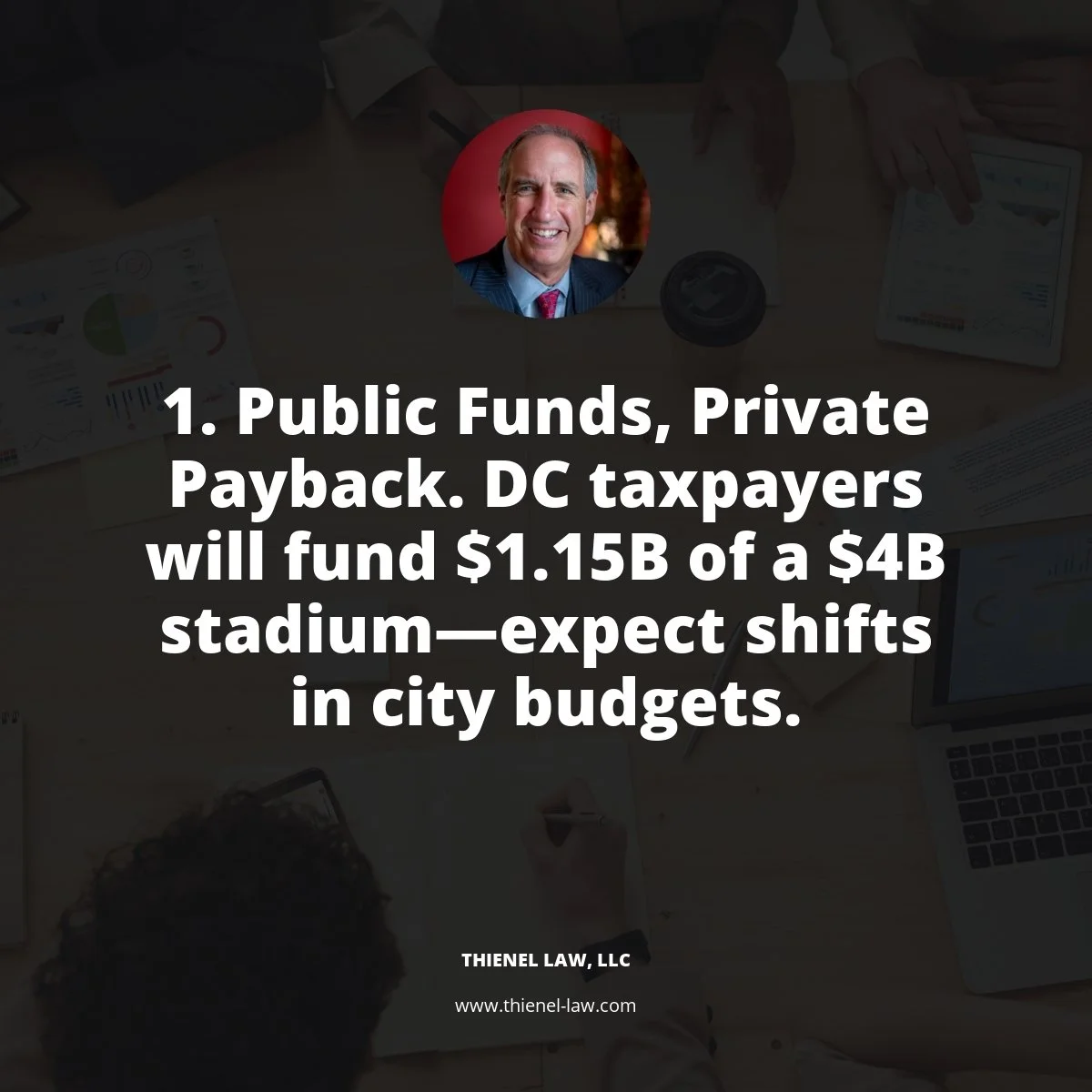 For wealthy clients and families with significant holdings in the District, the broader fiscal landscape is shifting. The use of public money for stadium financing may prompt new city-level estate planning considerations, especially for those with assets impacted by property redevelopment.